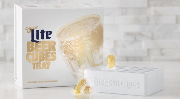 Miller lite has created a cure for warm beers in the summer, releasing trays of beer can shaped ice cubes intended for freezing your favourite brews. These cubes can then be slipped into your can or bottle to cool down those awful room temperature beers without diluting them with water.